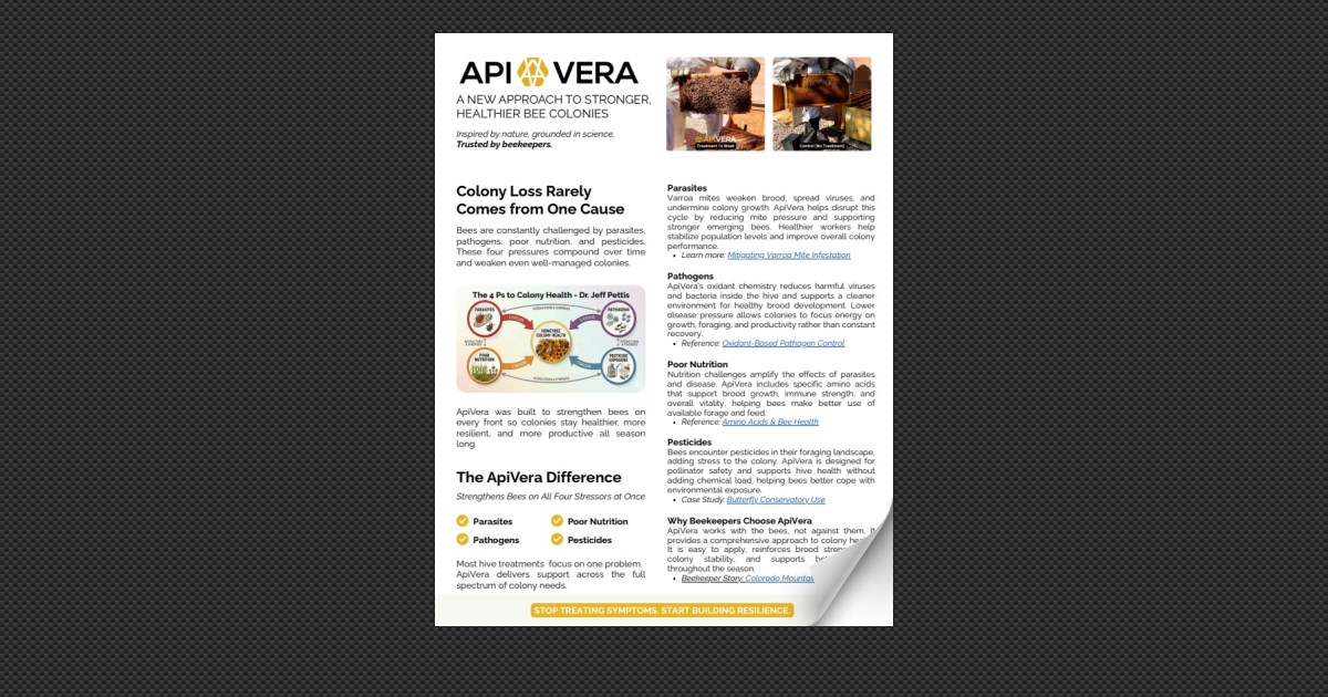 Recent research highlights the potential benefits of incorporating these amino acids in honey bee diets to mitigate the adverse effects of nutritional stress. ApiVera by Terra Vera offers a new kind of nutritional supplement to increase survival rates and help honey bees thrive.